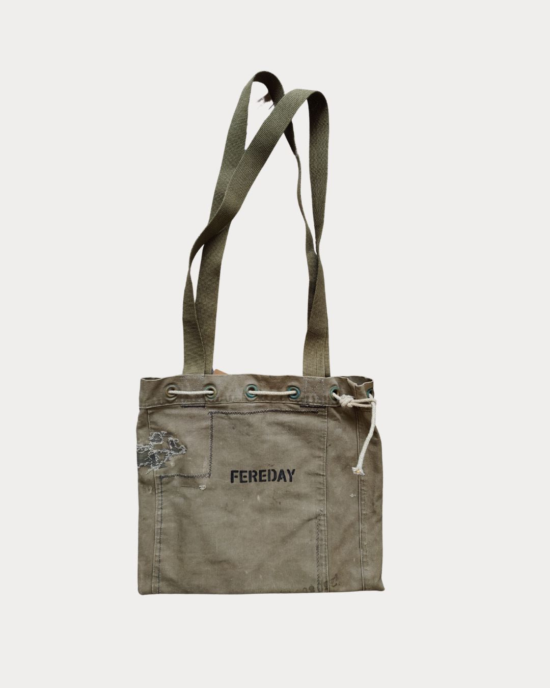 6124 by Fereday is a capsule collection of one-of-a-kind bags and tees, reimagined from reclaimed military kit. Built from the rugged textures of history, each piece carries marks of a former life — stencils, straps, eyelets, drawcords — preserved and reworked into something entirely new.