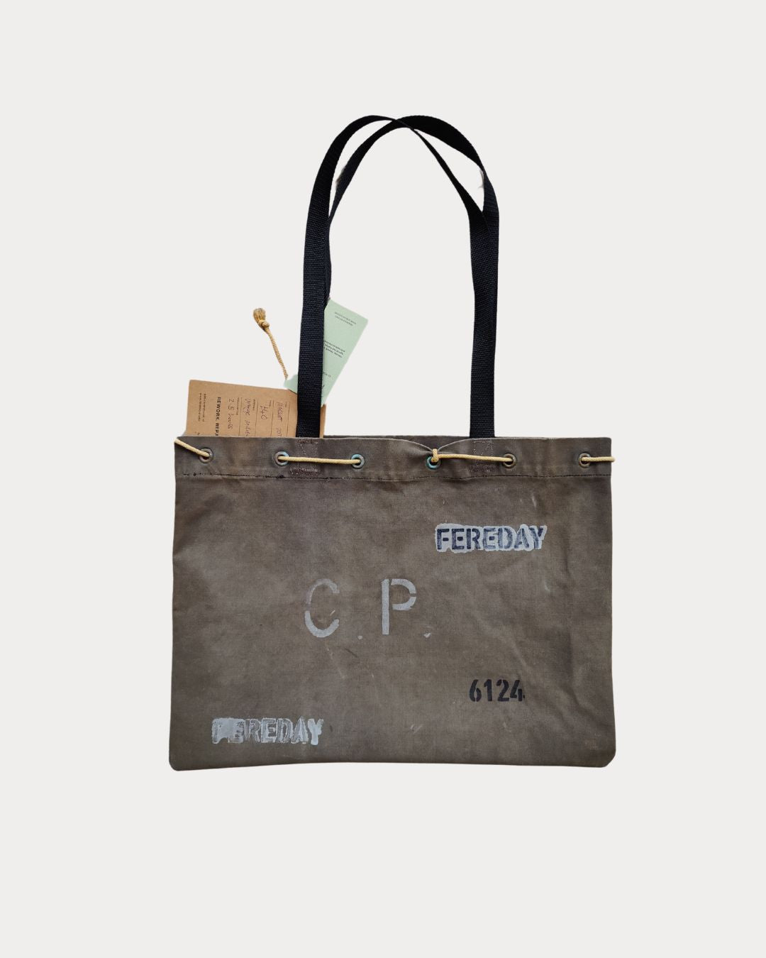 6124 by Fereday is a capsule collection of one-of-a-kind bags and tees, reimagined from reclaimed military kit. Built from the rugged textures of history, each piece carries marks of a former life — stencils, straps, eyelets, drawcords — preserved and reworked into something entirely new.