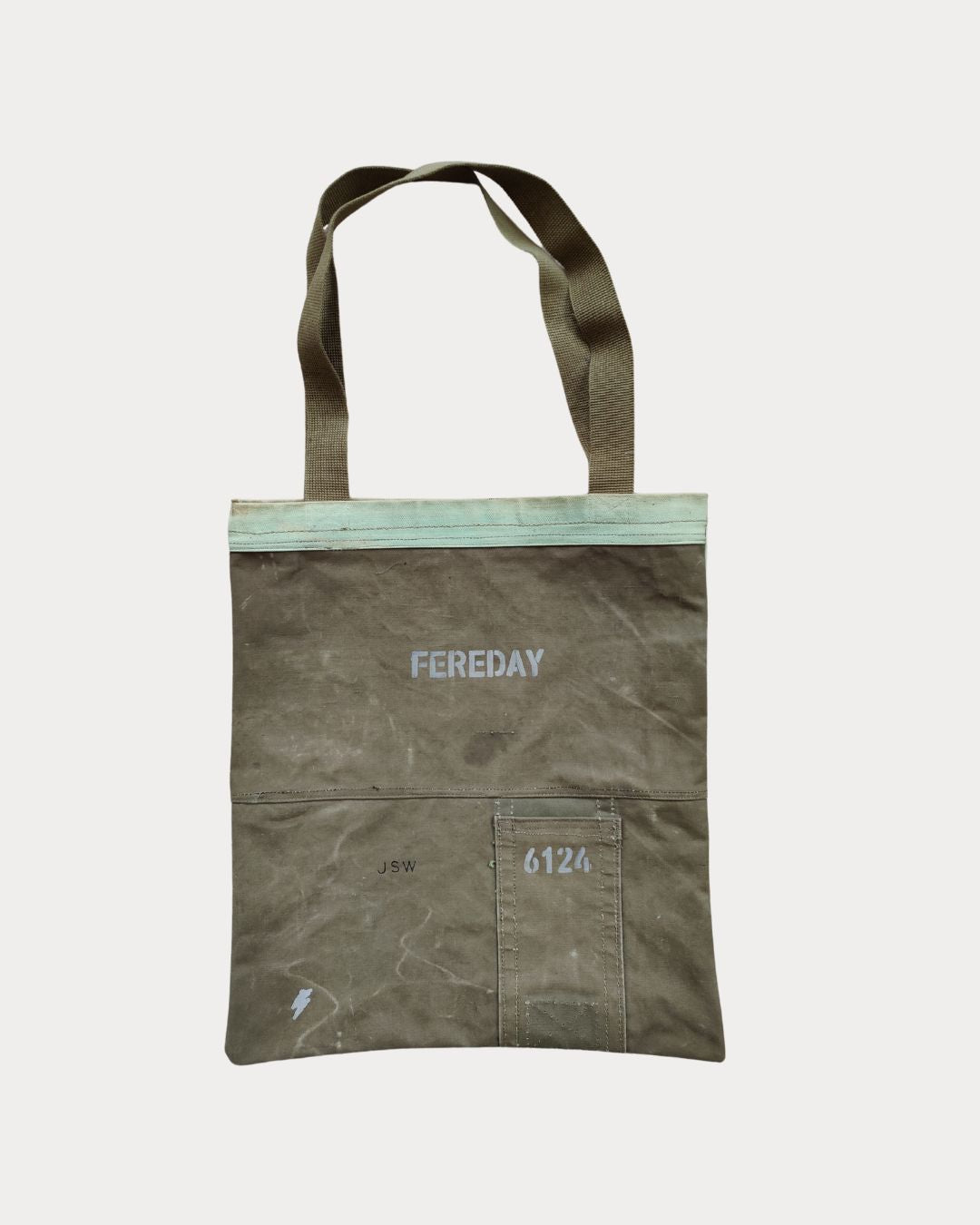 6124 by Fereday is a capsule collection of one-of-a-kind bags and tees, reimagined from reclaimed military kit. Built from the rugged textures of history, each piece carries marks of a former life — stencils, straps, eyelets, drawcords — preserved and reworked into something entirely new.