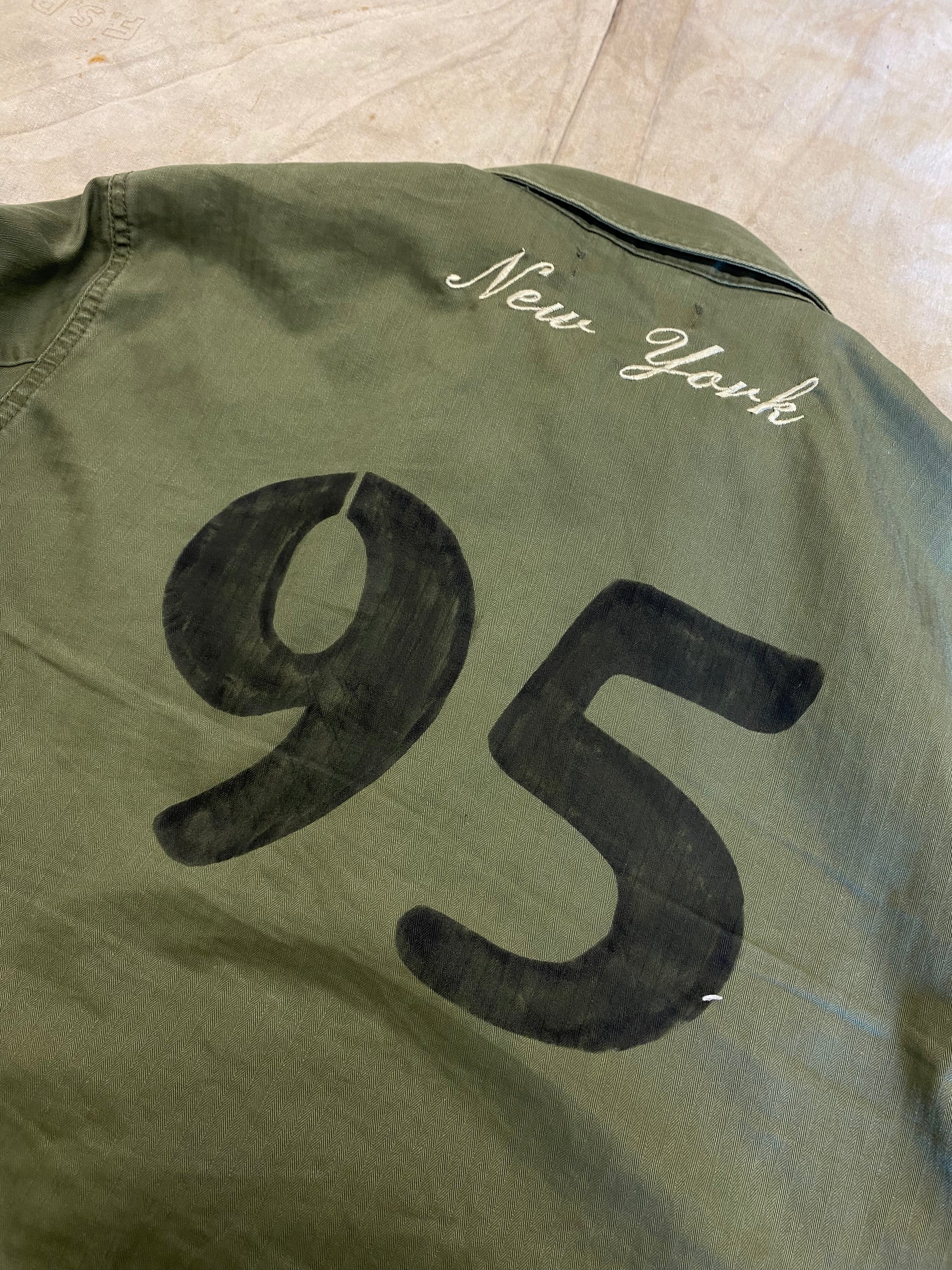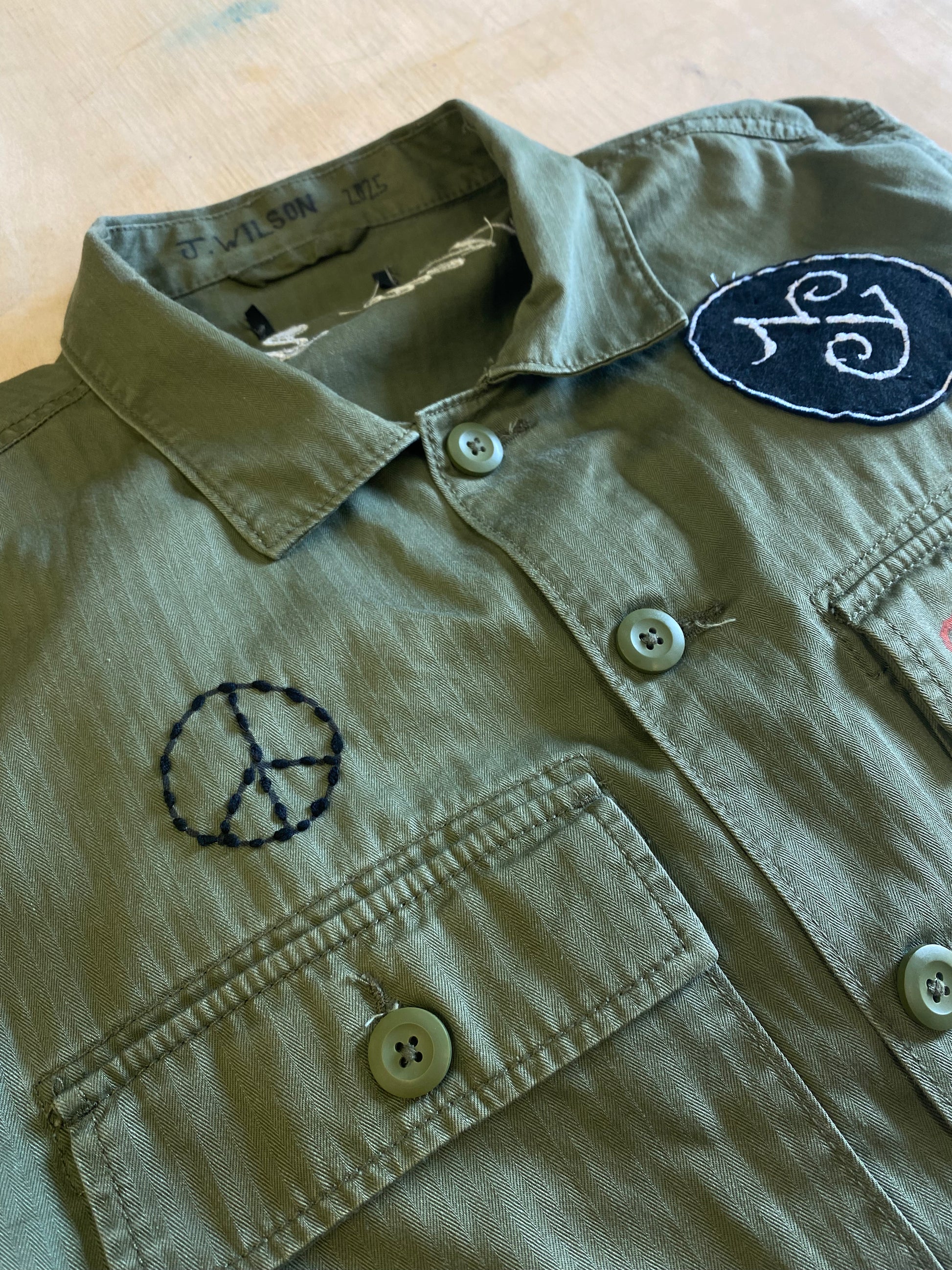 Reworked vintage army field shirt cropped, made short sleeve, with custom hearts embroidery and these siiiiiick heart cut outs. If you buy this I want photos!