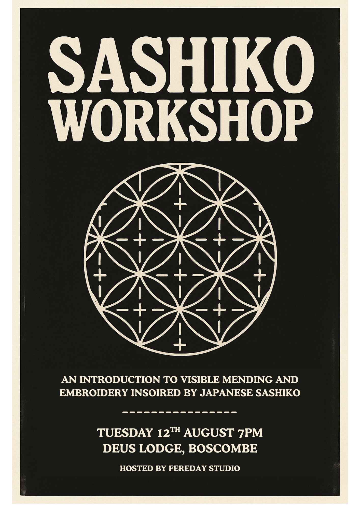 Join Fereday Studio for our first daytime Sashiko workshop at Deus Lodge — a gentle 2-hour introduction to visible mending, the Japanese art of hand-stitch repair.