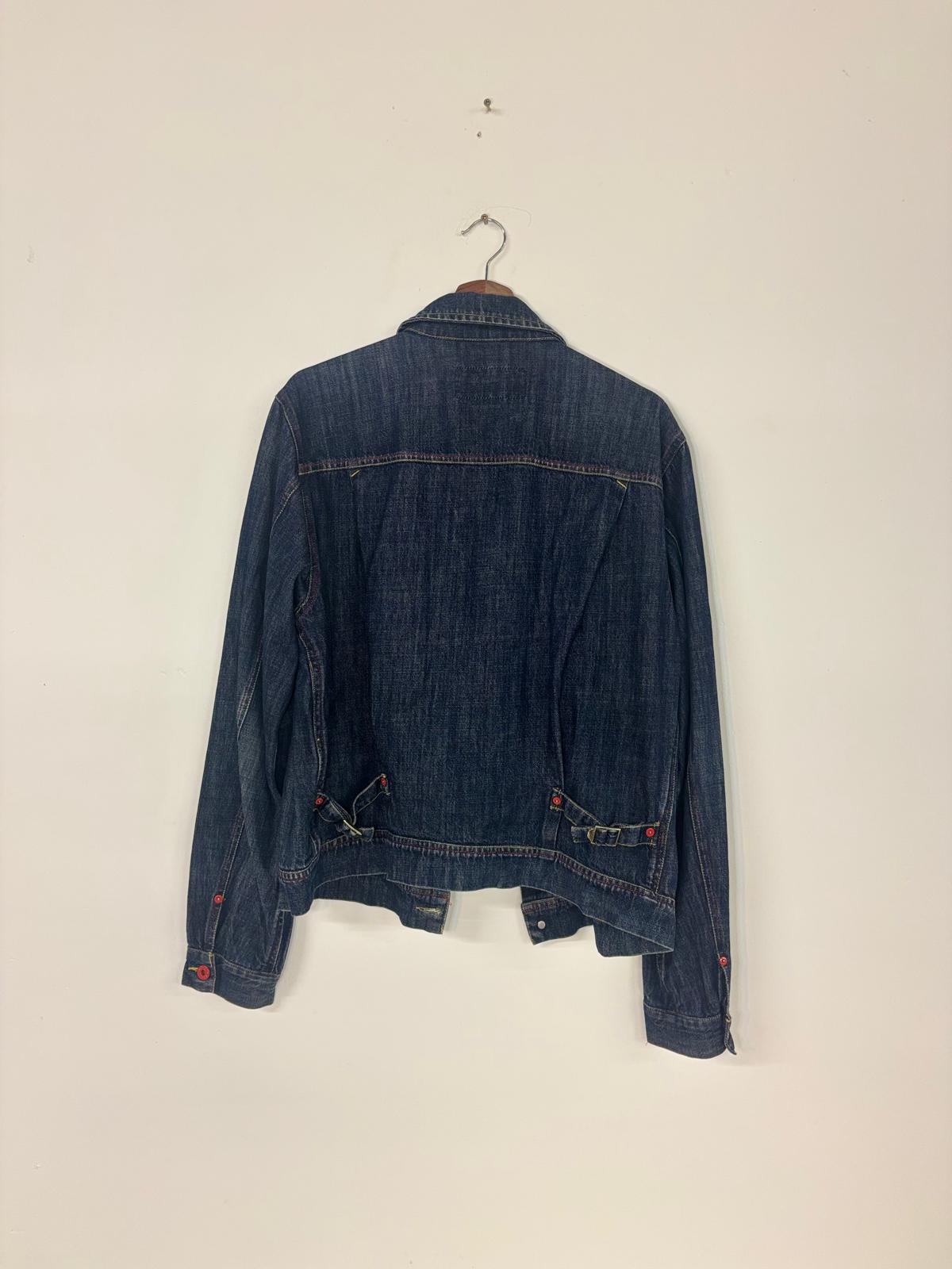 Individually sourced vintage Guess denim jacket with strong late-90s / early-2000s energy. Classic trucker silhouette with standout contrast details, red buttons, yellow bar-tack stitching and subtle branded accents.