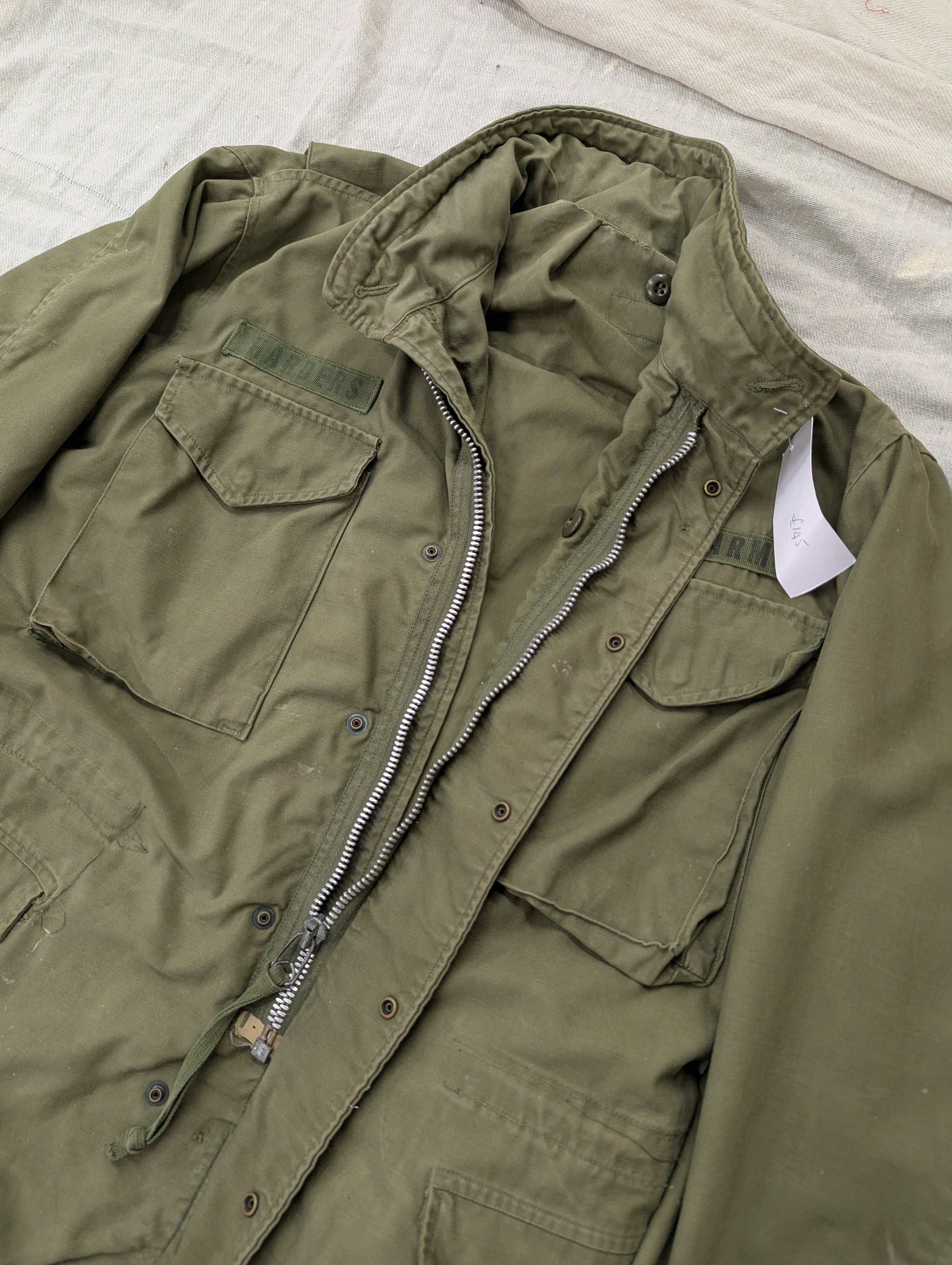 Original military-issued M-65 field jacket in classic olive drab. OG107 colour contractor made for the US army in the 1970s